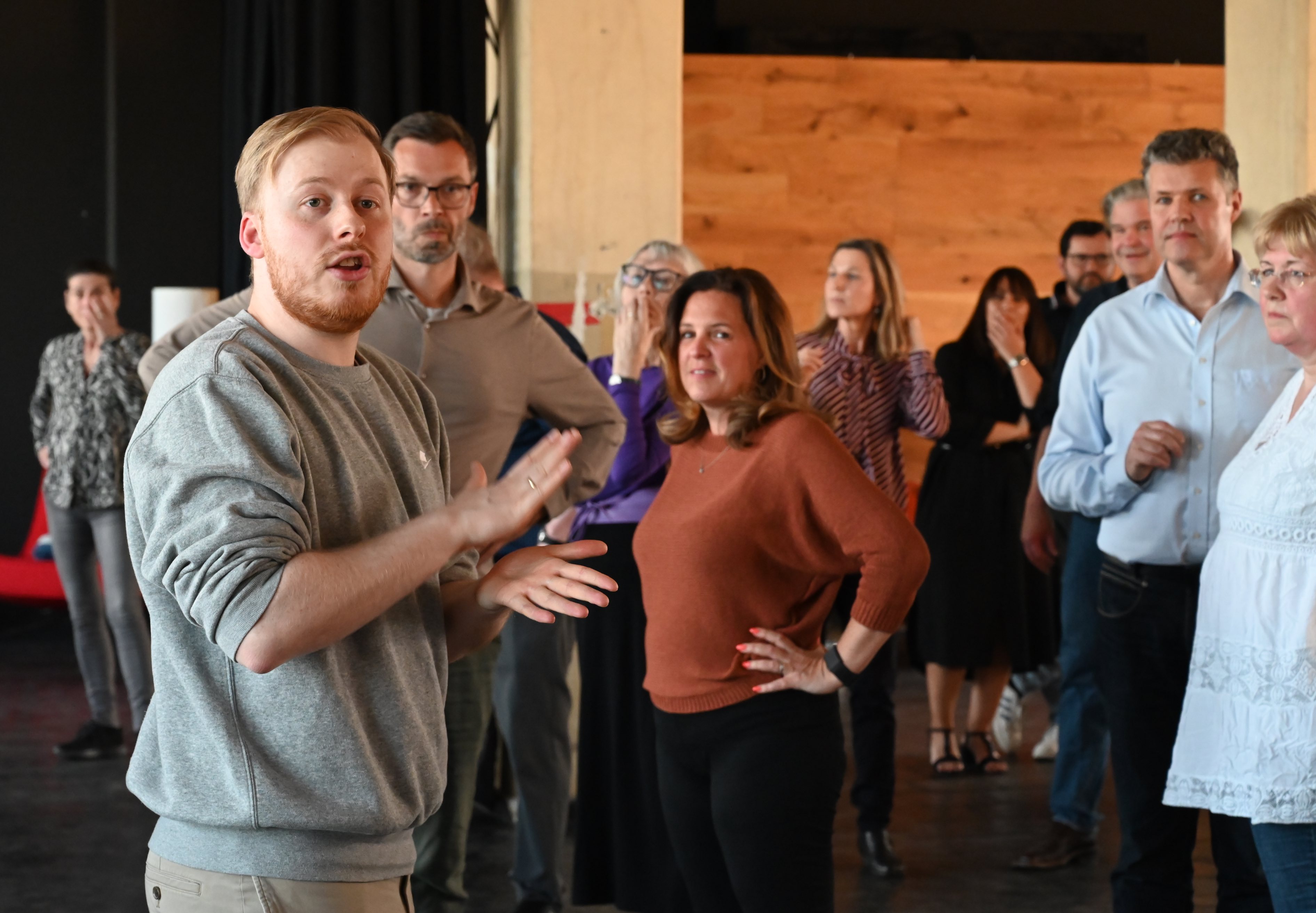 An einem milden Frühlingsabend lud der im Goerzwerk gegründete Netzwerkverein Goerzallee e.V. zum Latino-Tanzworkshop. Aufgefordert waren parkettsichere Profis ebenso wie Anfänger ohne Vorkenntnisse. Philipp Mützel, den wir als Coach für dieses Experiment gewinnen konnten, erschien lässig, in Sweater und Sneakers, und entsprach so gar nicht den Klischees eines typischen Tanzlehrer, was ihm von Anfang an die Sympathien der mehr als 40 Teilnehmenden sicherte. Der Sohn eines langjährigen Goerzwerkers und Tanzlehrer bei „Traumtänzer“ brachte viel Geduld und Professionalität mit, um selbst Tänzern mit den buchstäblich „zwei linken Füßen“ Erfolgserlebnisse und jede Menge Spaß beim Erlernen von Rumba und Salsa zu vermitteln.
