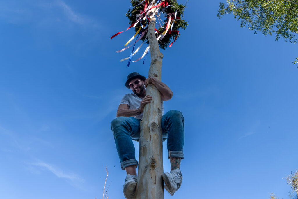 Bis 17 Uhr steigt die Spannung, denn dann wird nach schöner Goerzwerk-Tradition der bunt geschmückte Maibaum aufgestellt. Wer schafft es bis nach ganz oben? Das anschließende Kraxeln bringt es ans Licht … .